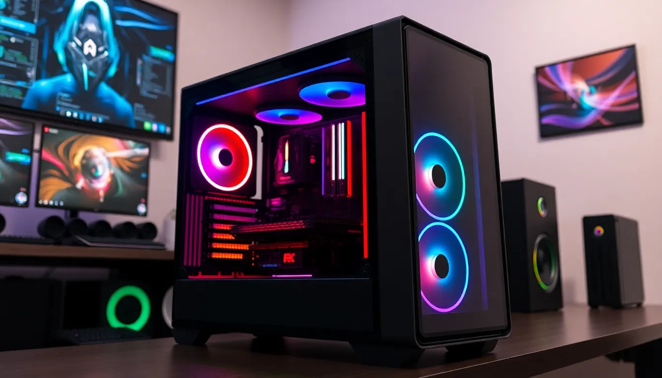 Sleek lines and modern styling define the desktop’s exterior. RGB lighting accents add a dynamic visual flair, customizable through various settings. Users can choose different colors to match their gaming setups. Glass side panels provide a glimpse into the high-performance internals, showcasing components. This design approach appeals to gamers who value both functionality and aesthetics.